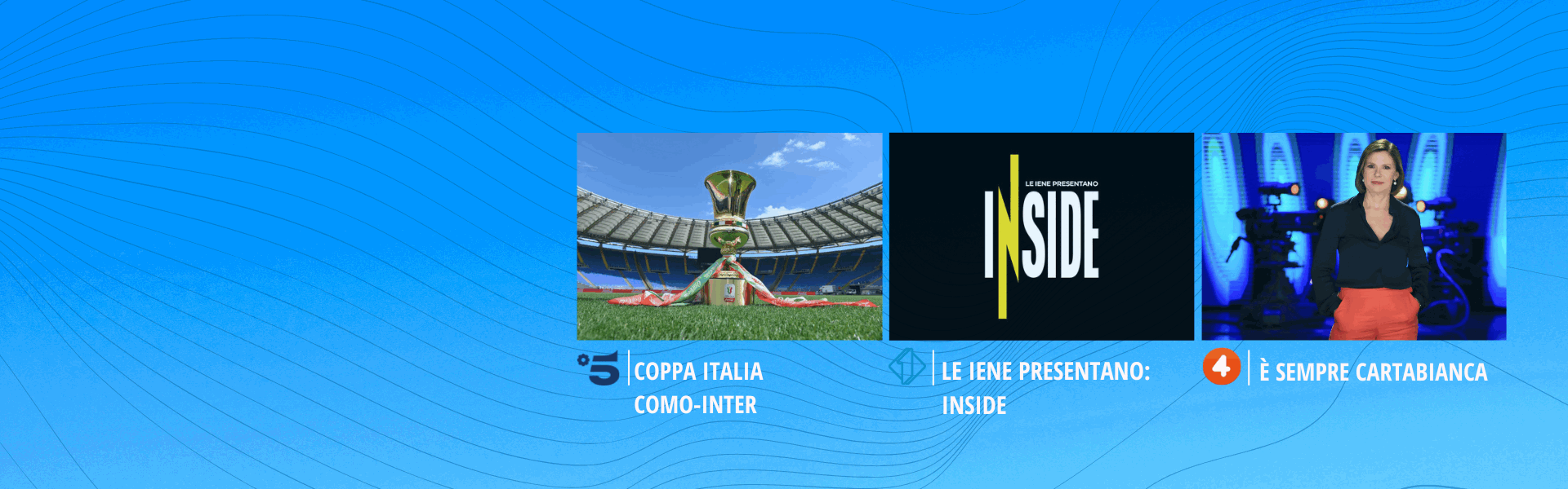 Come vedete, non faccio distinzioni. Succede che stasera, a quelli appassionati, facciamo un gran bel regalo con l’esclusiva assoluta della prima semifinale della Coppa Italia. Sarà su Canale 5 e parliamo di una super-gara con due tra le migliori squadre in circolazione: Como-Inter! E tenete conto che si tratta solo della sfida d’andata, nella quale le due squadre si daranno battaglia anche e soprattutto in vista del ritorno che si giocherà invece in casa dei nerazzurri di Milano. Tra l’altro, gli appassionati in questione sanno già che domani si replica, ovvero ci si sposta su Italia 1 per la seconda semifinale che si preannuncia anch’essa molto combattuta, ovvero Lazio-Atalanta...