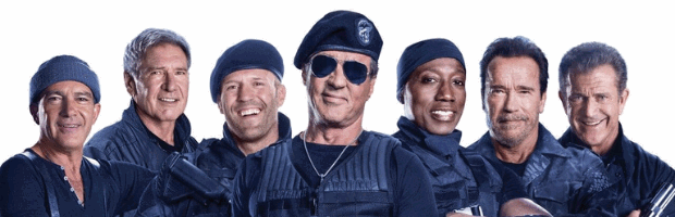 Cast: Sylvester Stallone, Jason Statham, Jet Li, Dolph Lundgren, Arnold Schwarzenegger, Terry Crews, Randy Couture, Wesley Snipes, Mel Gibson e Harrison Ford.